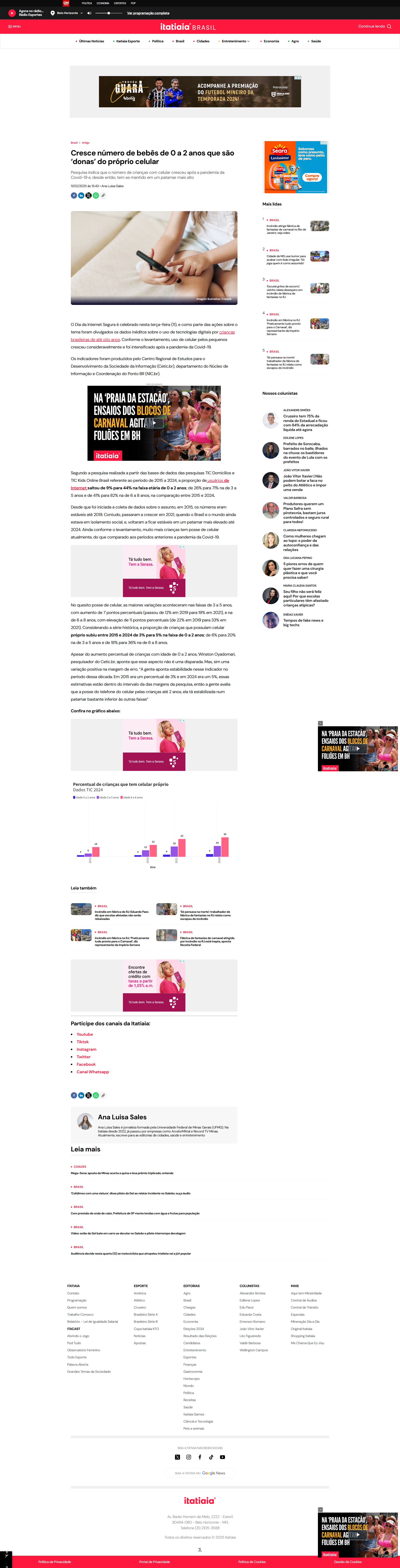 Desde que foi iniciada a coleta de dados sobre o assunto, em 2015, os números eram estáveis até 2019. Contudo, passaram a crescer em 2021, quando o Brasil e o mundo ainda estava em isolamento social, e, voltaram a ficar estáveis em um patamar mais elevado até 2024. Ainda conforme o levantamento, muito mais crianças tem posse de celular atualmente, do que comparado aos períodos anteriores a pandemia da Covid-19.