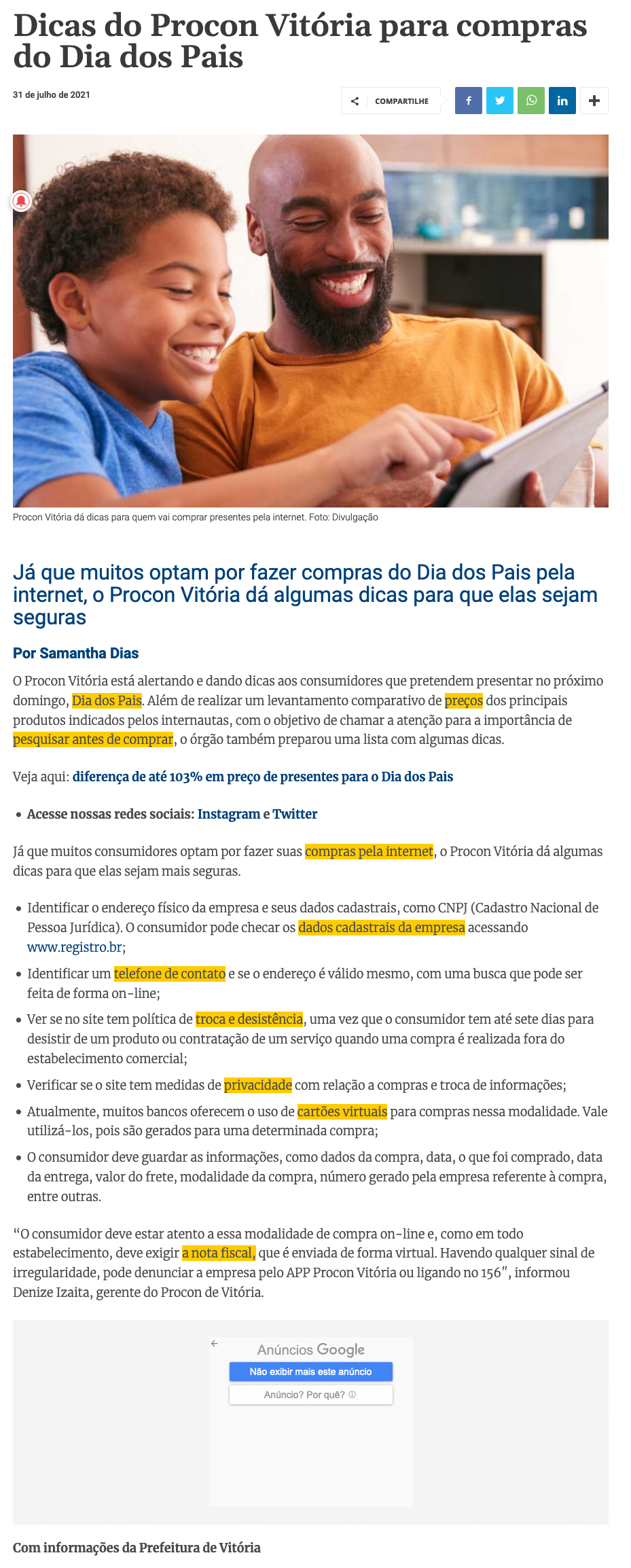 Já que muitos optam por fazer compras do Dia dos Pais pela internet, o Procon Vitória dá algumas dicas para que elas sejam seguras