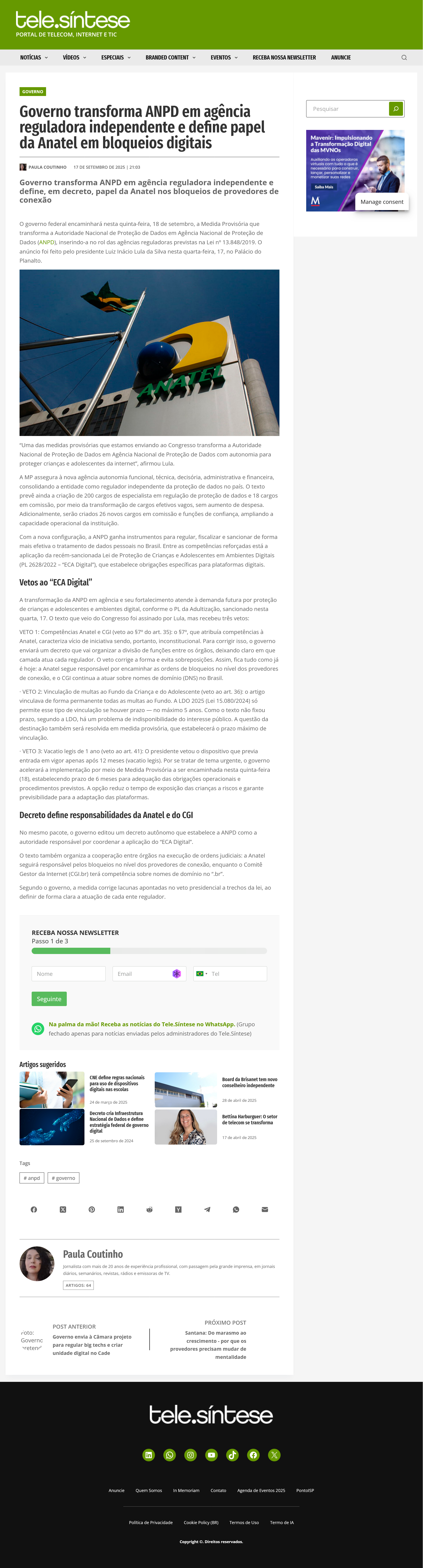 Governo transforma ANPD em agência reguladora independente e define papel da Anatel em bloqueios digitais