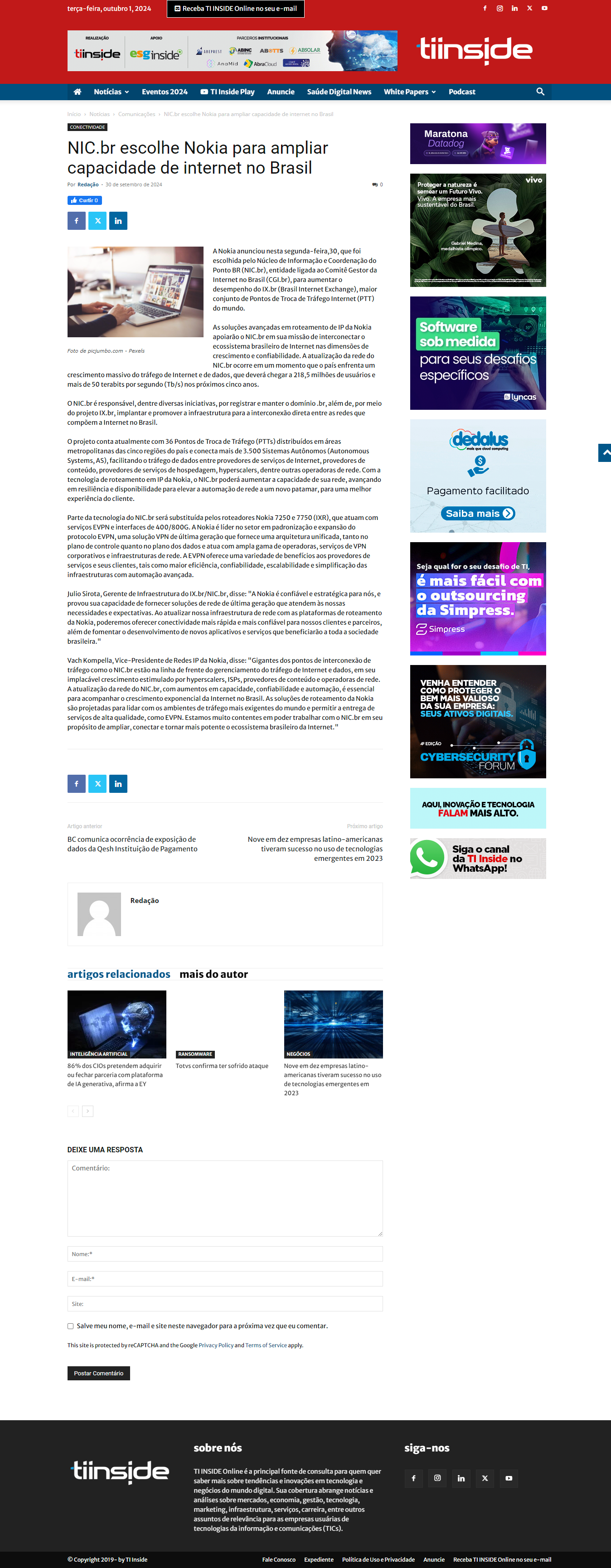 NIC.br escolhe Nokia para ampliar capacidade de Internet no Brasil