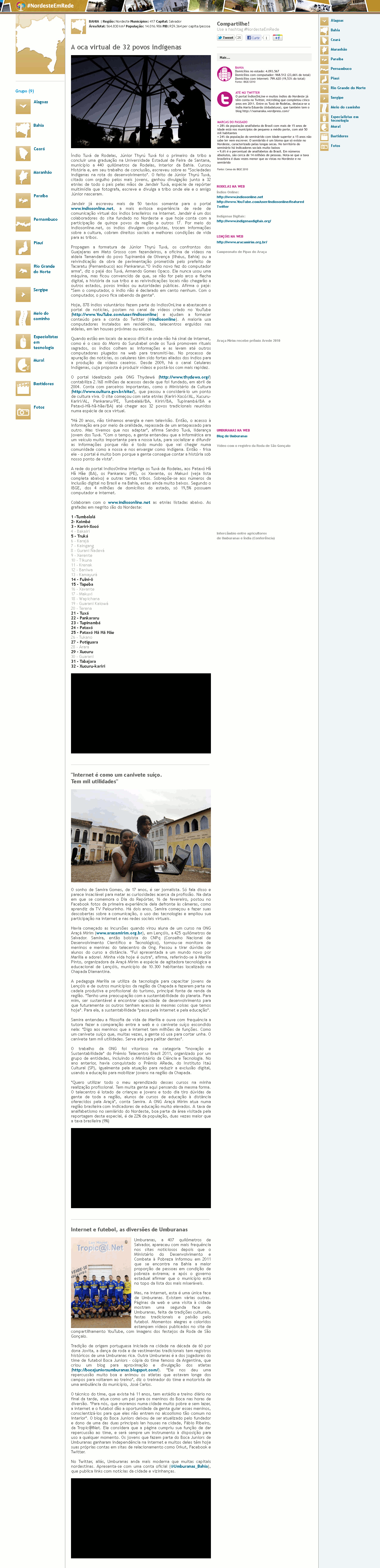 O portal idealizado pela ONG Thydewá (http://www.thydewa.org/) contabiliza 2.168 milhões de acessos desde que foi fundado, em abril de 2004. Conta com parceiros importantes, como o Ministério da Cultura (http://www.cultura.gov.br/site/), que passou a considerá-lo um ponto de cultura viva. O site começou com sete etnias (Kariri-Xocó/AL, Xucuru-Kariri/AL, Pankararu/PE, Tumbalalá/BA, Kiriri/BA, Tupinambá/BA e Pataxó-Hã-hã-hãe/BA) até chegar aos 32 povos tradicionais reunidos numa espécie de oca virtual.