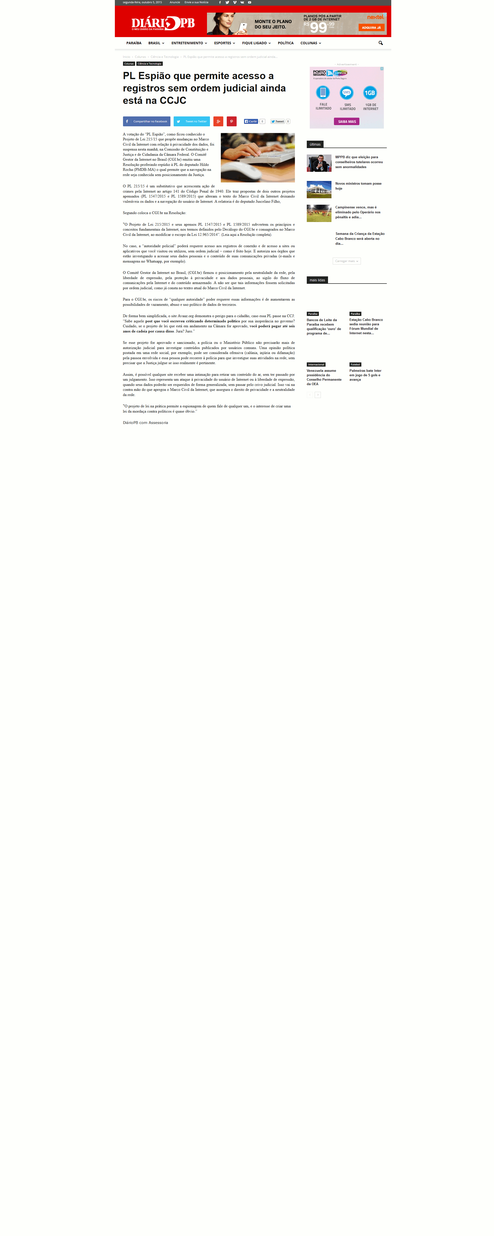 PL Espião que permite acesso a registros sem ordem judicial ainda está na CCJC