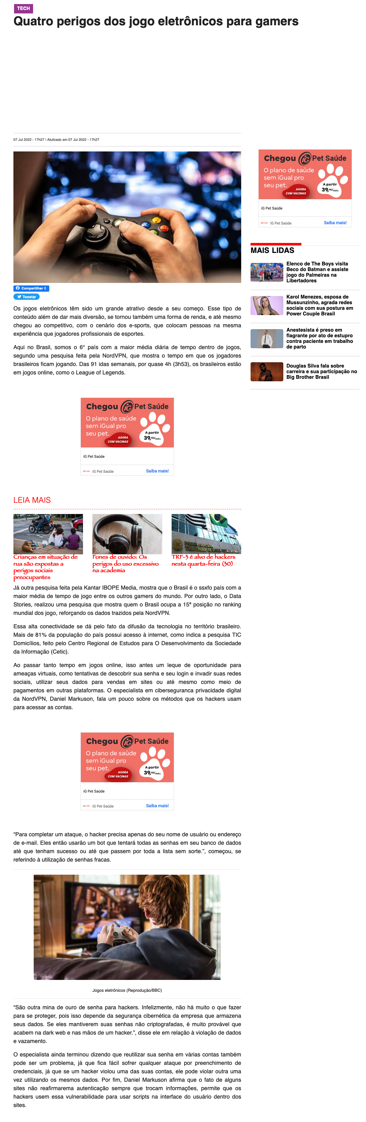 Ao passar tanto tempo em jogos online, isso antes um leque de oportunidade para ameaças virtuais, como tentativas de descobrir sua senha e seu login e invadir suas redes sociais, utilizar seus dados para vendas em sites ou até mesmo como meio de pagamentos em outras plataformas. O especialista em ciberseguranca privacidade digital da NordVPN, Daniel Markuson, fala um pouco sobre os métodos que os hackers usam para acessar as contas.