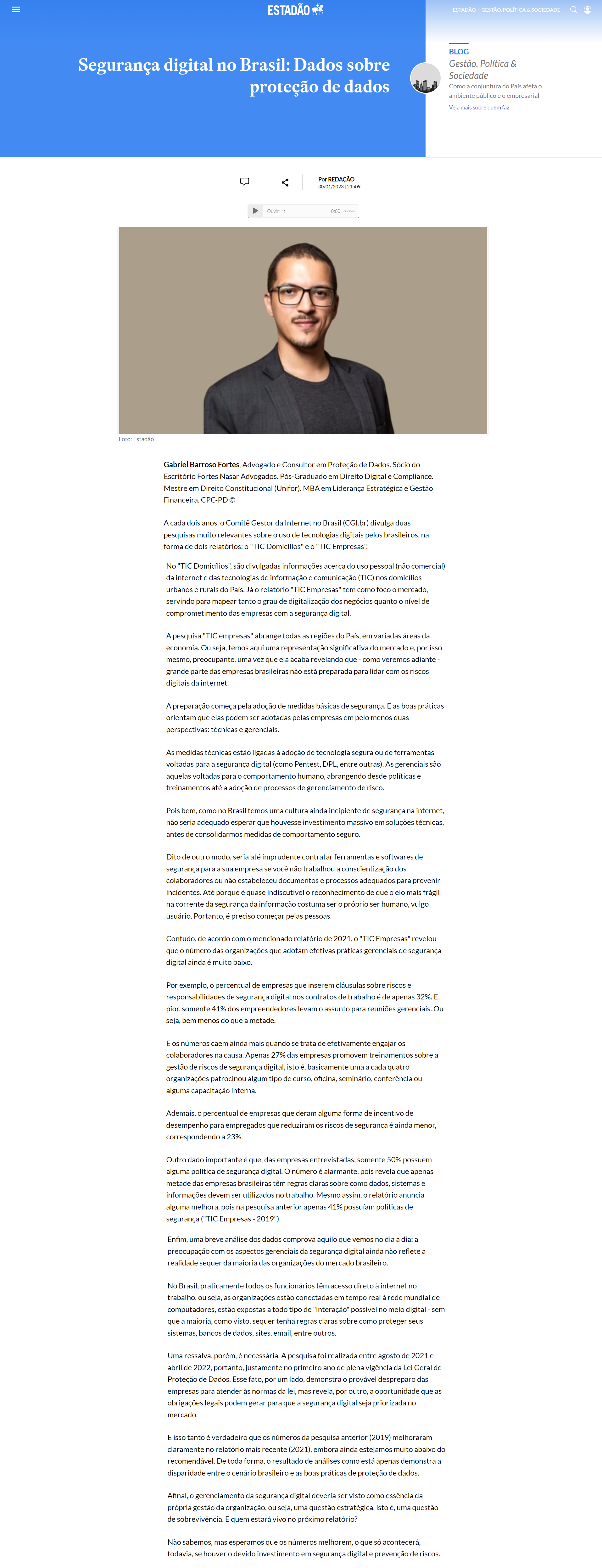 Contudo, de acordo com o mencionado relatório de 2021, o "TIC Empresas" revelou que o número das organizações que adotam efetivas práticas gerenciais de segurança digital ainda é muito baixo.