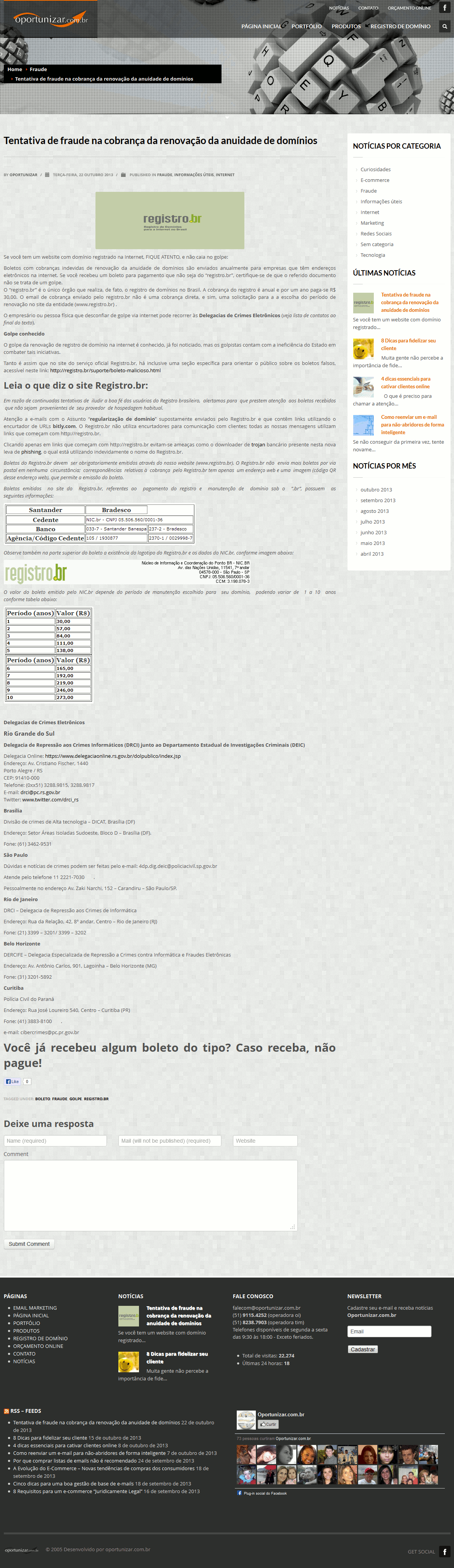 O golpe da renovação de registro de domínio na internet é conhecido, já foi noticiado, mas os golpistas contam com a ineficiência do Estado em combater tais iniciativas.