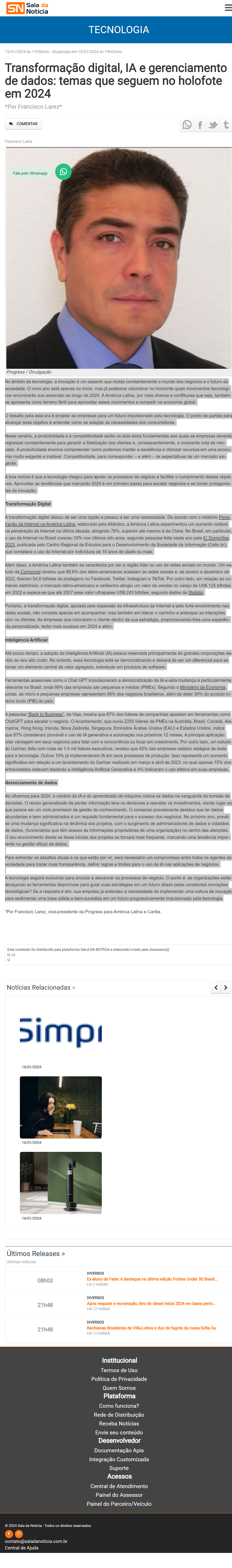 No âmbito da tecnologia, a inovação é um aspecto que molda constantemente o mundo dos negócios e o futuro da sociedade. O novo ano está apenas no início, mas já podemos vislumbrar no horizonte quais movimentos tecnológicos encontrarão sua ascensão ao longo de 2024. A América Latina, por mais diversa e conflituosa que seja, também se apresenta como terreno fértil para aproveitar esses movimentos e competir na economia global.