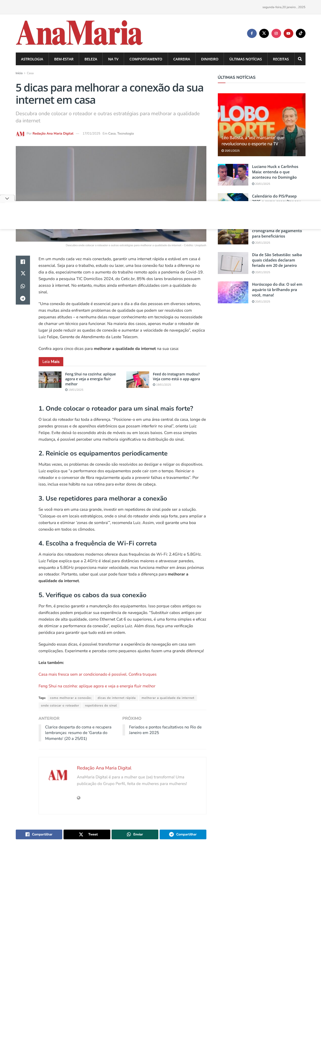 O local do roteador faz toda a diferença. “Posicione-o em uma área central da casa, longe de paredes grossas e de aparelhos eletrônicos que possam interferir no sinal”, orienta Luiz Felipe. Evite deixá-lo escondido atrás de móveis ou em locais baixos. Com essa simples mudança, é possível perceber uma melhoria significativa na distribuição do sinal.