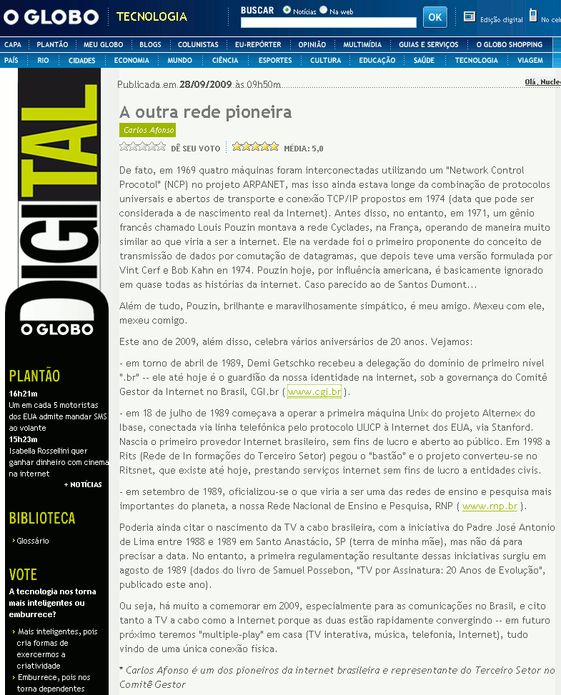 - em setembro de 1989, oficializou-se o que viria a ser uma das redes de ensino e pesquisa mais importantes do planeta, a nossa Rede Nacional de Ensino e Pesquisa, RNP ( www.rnp.br ).