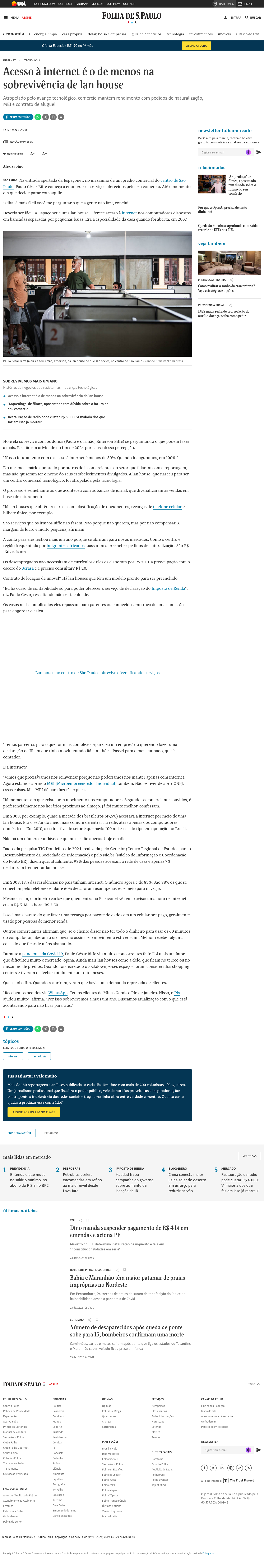 Na entrada apertada da Espaçonet, no mezanino de um prédio comercial do centro de São Paulo, Paulo César Biffe começa a enumerar os serviços oferecidos pelo seu comércio. Até o momento em que decide parar com aquilo.