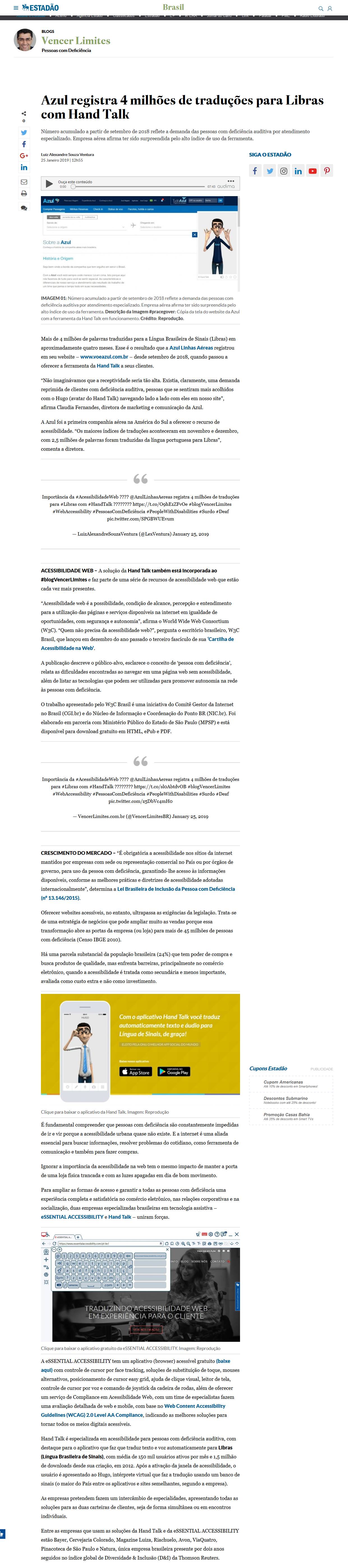 Para ampliar as formas de acesso e garantir a todas as pessoas com deficiência uma experiência completa e satisfatória no comércio eletrônico, nas relações corporativas e na socialização, duas empresas especializadas brasileiras em tecnologia assistiva – eSSENTIAL ACCESSIBILITY e Hand Talk – uniram forças.
