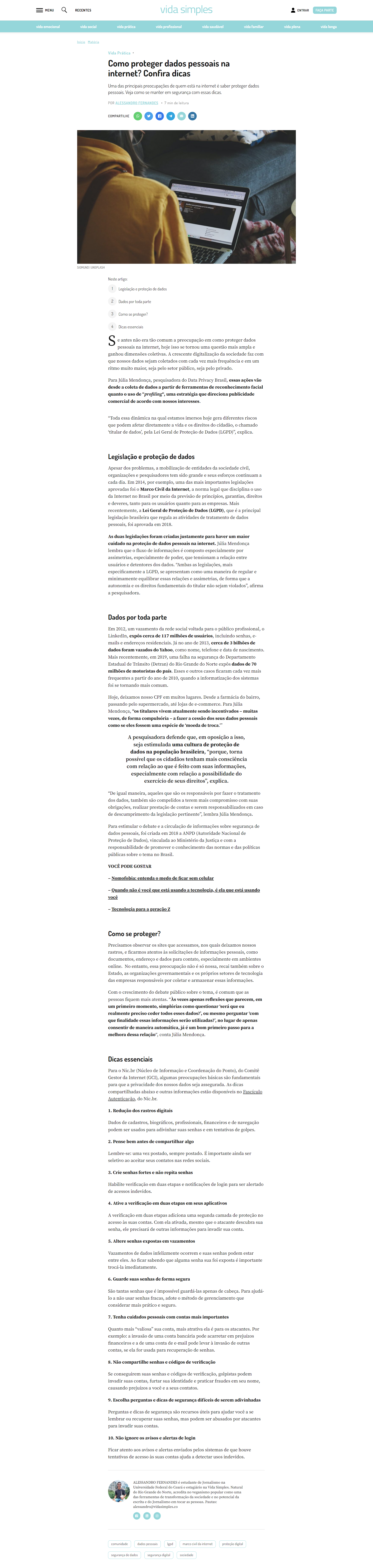 Precisamos observar os sites que acessamos, nos quais deixamos nossos rastros, e ficarmos atentos às solicitações de informações pessoais, como documentos, endereço e dados para contato, especialmente em ambientes online. No entanto, essa preocupação não é só nossa, recai também sobre o Estado, as organizações governamentais e os próprios setores de tecnologia das empresas responsáveis por coletar e armazenar essas informações.