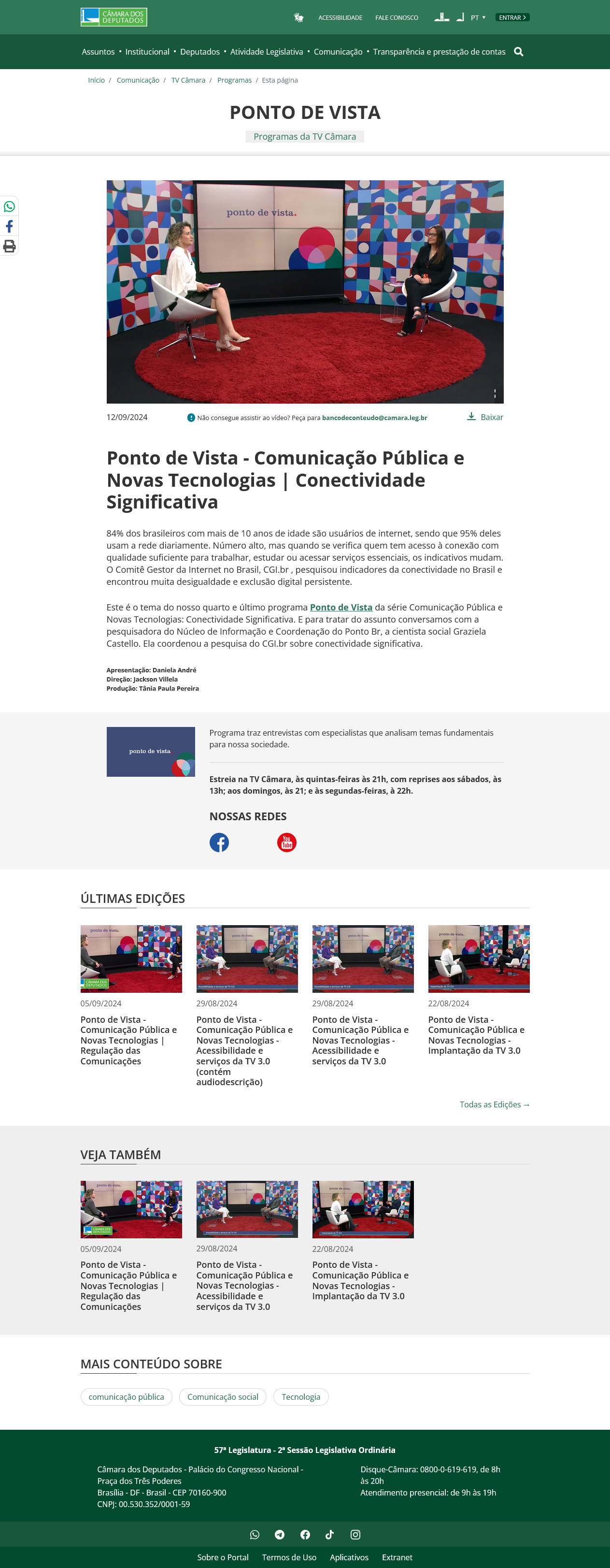 Assista à entrevista na íntegra: https://www.camara.leg.br/tv/1096013-ponto-de-vista-comunicacao-publica-e-novas-tecnologias-conectividade-significativa