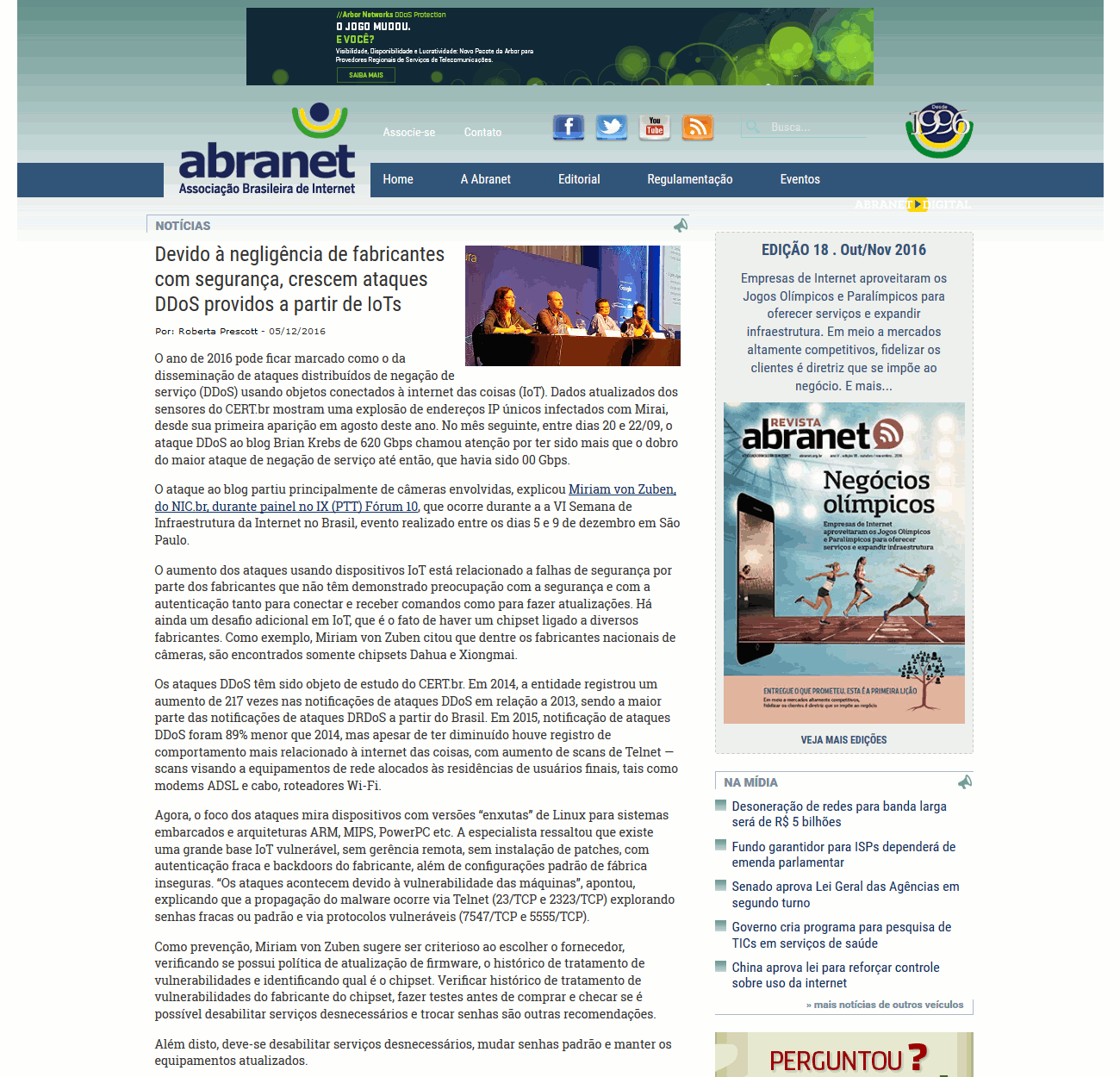 O ataque ao blog partiu principalmente de câmeras envolvidas, explicou Miriam von Zuben, do NIC.br, durante painel no IX (PTT) Fórum 10, que ocorre durante a a VI Semana de Infraestrutura da Internet no Brasil, evento realizado entre os dias 5 e 9 de dezembro em São Paulo.