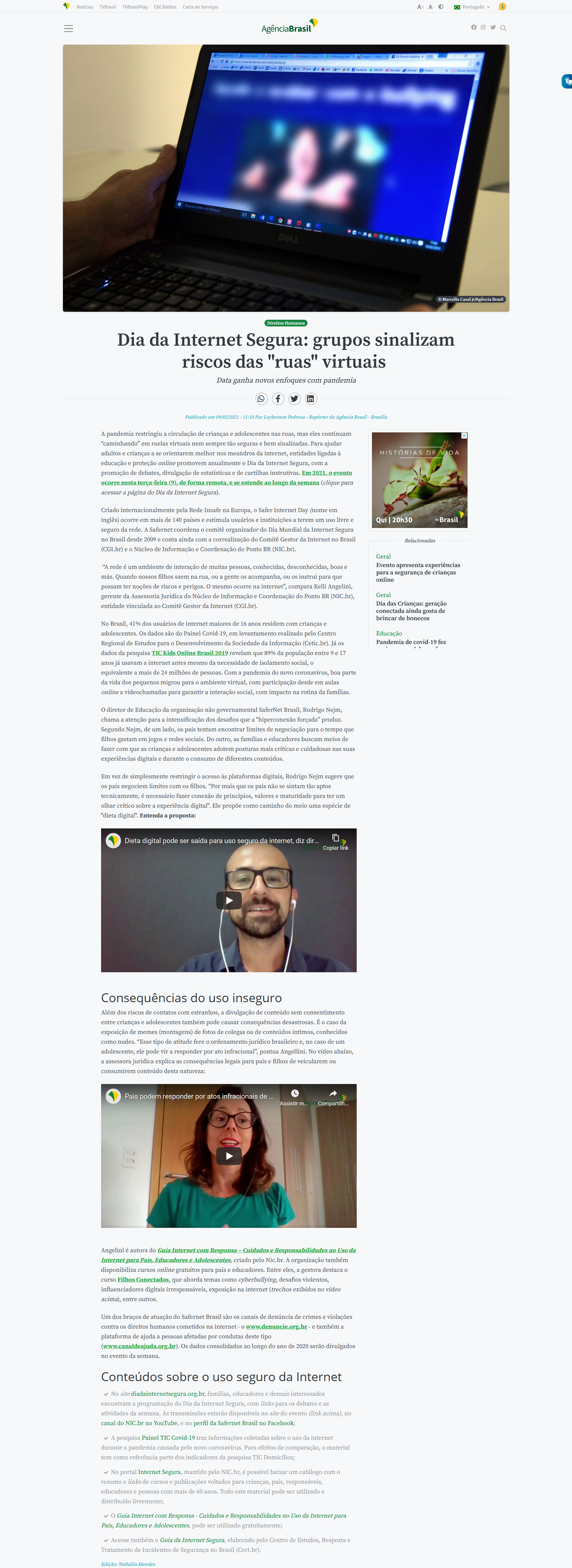 O diretor de Educação da organização não governamental SaferNet Brasil, Rodrigo Nejm, chama a atenção para a intensificação dos desafios que a "hiperconexão forçada” produz. Segundo Nejm, de um lado, os pais tentam encontrar limites de negociação para o tempo que filhos gastam em jogos e redes sociais. Do outro, as famílias e educadores buscam meios de fazer com que as crianças e adolescentes adotem posturas mais críticas e cuidadosas nas suas experiências digitais e durante o consumo de diferentes conteúdos.