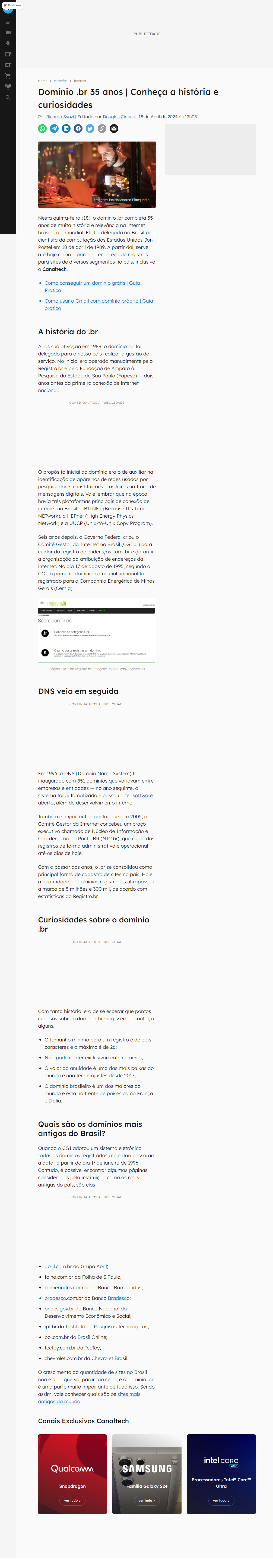 Nesta quinta-feira (18), o domínio .br completa 35 anos de muita história e relevância na internet brasileira e mundial. Ele foi delegado ao Brasil pelo cientista da computação dos Estados Unidos Jon Postel em 18 de abril de 1989. A partir daí, serve até hoje como o principal endereço de registros para sites de diversos segmentos no país, inclusive o Canaltech.