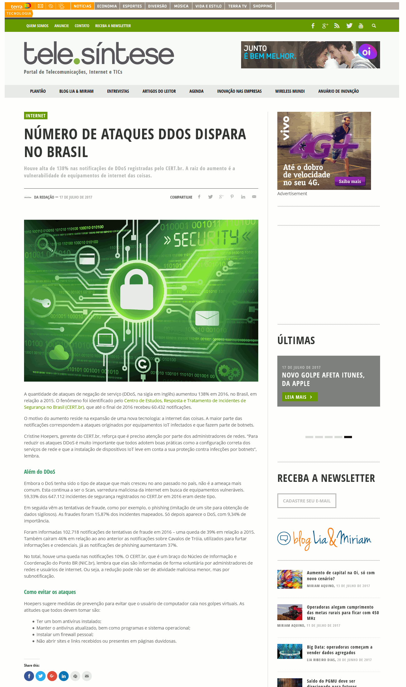 A quantidade de ataques de negação de serviço (DDoS, na sigla em inglês) aumentou 138% em 2016, no Brasil, em relação a 2015. O fenômeno foi identificado pelo Centro de Estudos, Resposta e Tratamento de Incidentes de Segurança no Brasil (CERT.br), que até o final de 2016 recebeu 60.432 notificações.