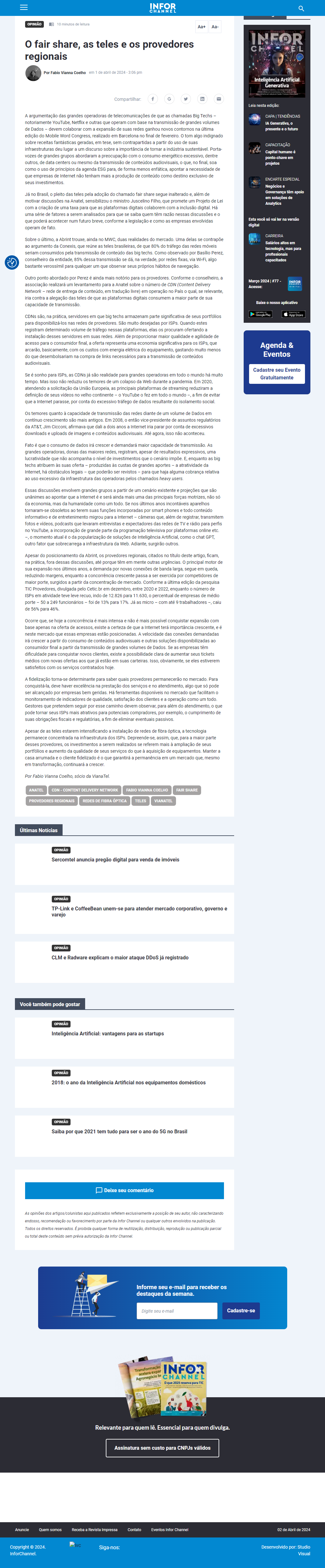 Já no Brasil, o pleito das teles pela adoção do chamado fair share segue inalterado e, além de motivar discussões na Anatel, sensibilizou o ministro Juscelino Filho, que promete um Projeto de Lei com a criação de uma taxa para que as plataformas digitais colaborem com a inclusão digital. Há uma série de fatores a serem analisados para que se saiba quem têm razão nessas discussões e o que poderá acontecer num futuro breve, conforme a legislação e como as empresas envolvidas operam de fato.