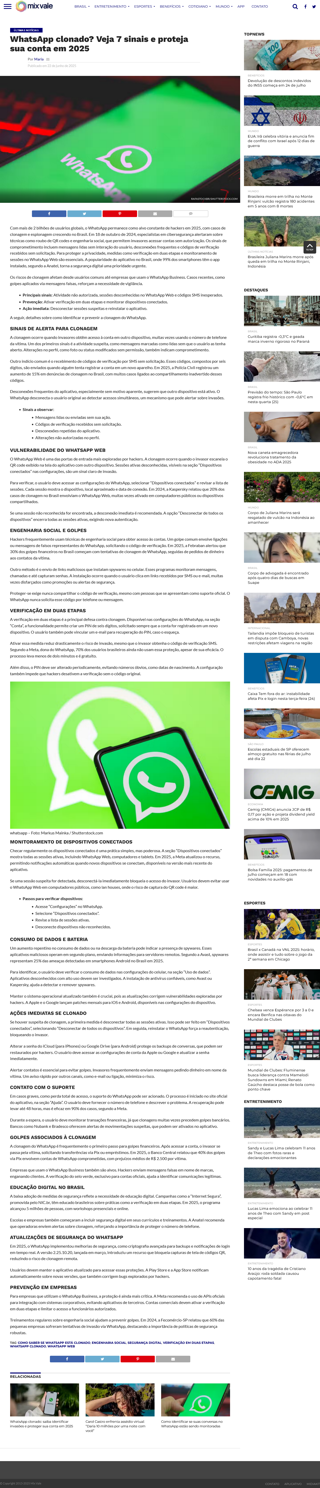 - Principais sinais: Atividade não autorizada, sessões desconhecidas no WhatsApp Web e códigos SMS inesperados.